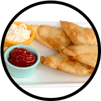 Sosis, ketçap ve mayonez ile tatlandırılıp, kaşar peyniri ile tortillaya sarılır, parmak patates ve söğüş sebze ile servis edilir.